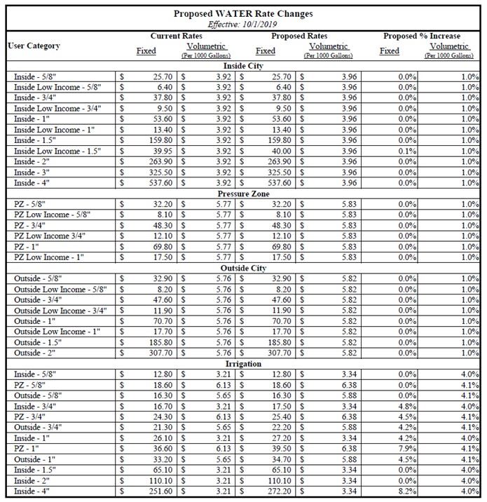 Door Tag Fee Turn off Fee for Delinquent Account Turn-on or Turn-off (for repairs) Call out Fee (outside regular business hours) Return Check or ACH Fee Meter Tampering Fee Data Logging Fee (1st one free) Customer Requested Meter Read Inspection Fee | $ 25.00 $ 50.00 $ 25.00 $100.00 $ 25.00 Cost based on Labor and Material $ 10.00 $ 10.00 $ 50.00